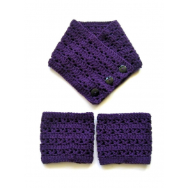 Need a little something for winter, or maybe a gift? This cute crochet set is just the ticket. The set includes a hat, fingerless gloves and boot cuffs all crocheted in a variegated pink acrylic yarn. Done in solid double crochet with scallops on edges to match perfectly.